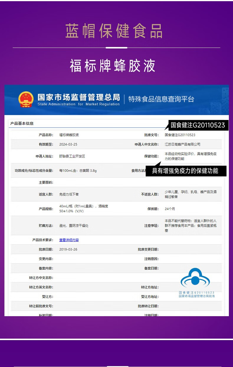 男女中老年口服蜂胶提取液 蓝帽保健品食品 增强免疫力40ml*1支