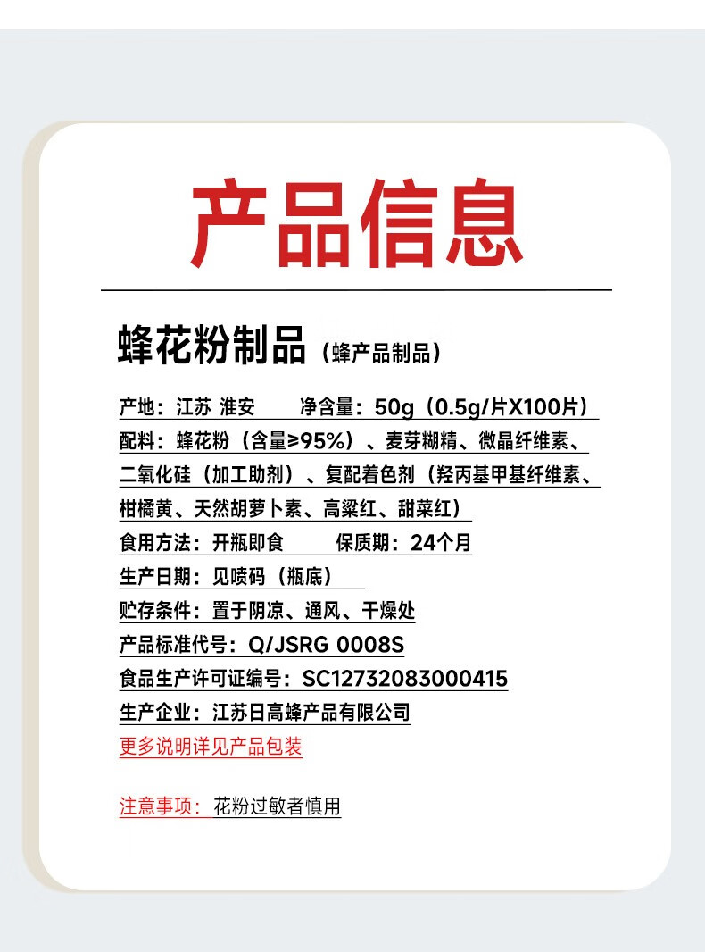 福标(fubiao)蜂花粉制品 1瓶*100片