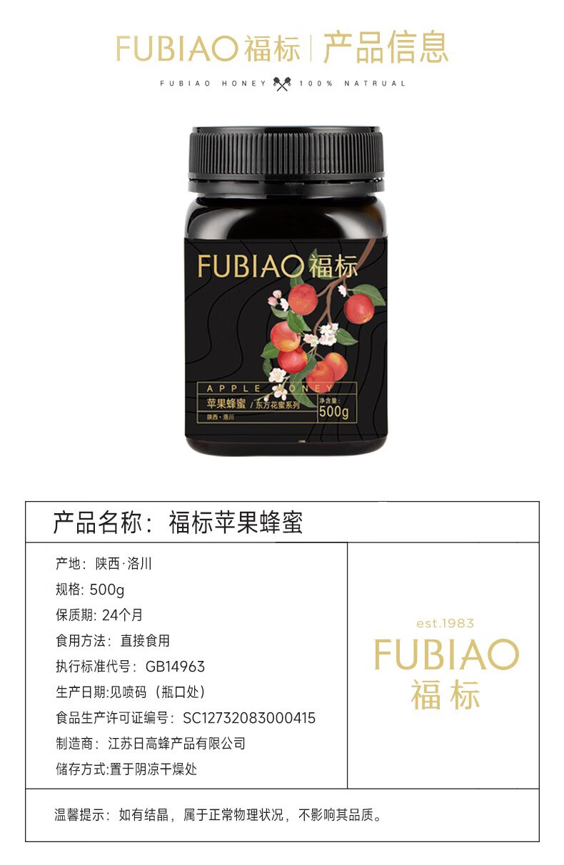 福标 天然苹果蜂蜜 500g/瓶装