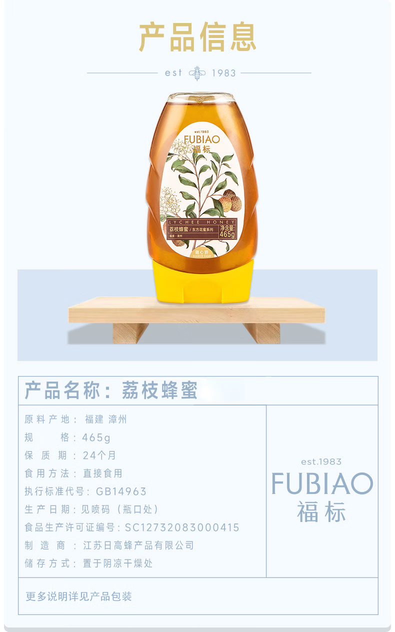 福标 福建漳州荔枝蜂蜜 465g/瓶装