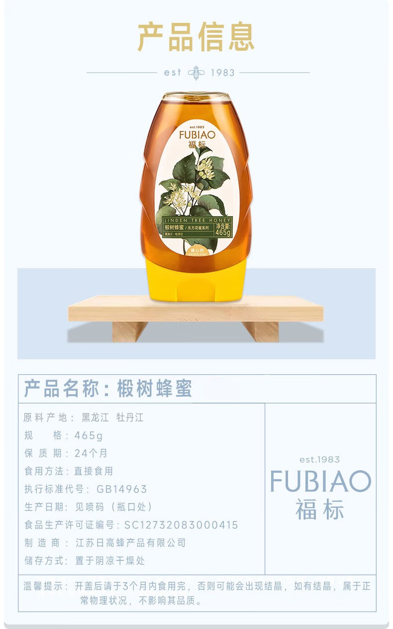 福标 东北牡丹江椴树蜂蜜 465g/瓶装