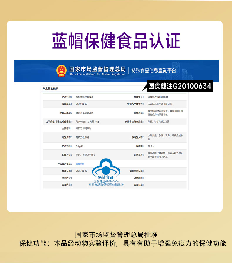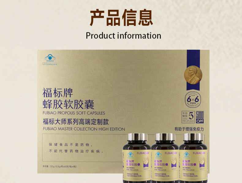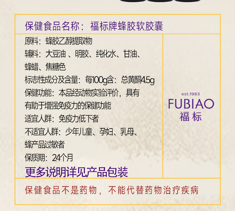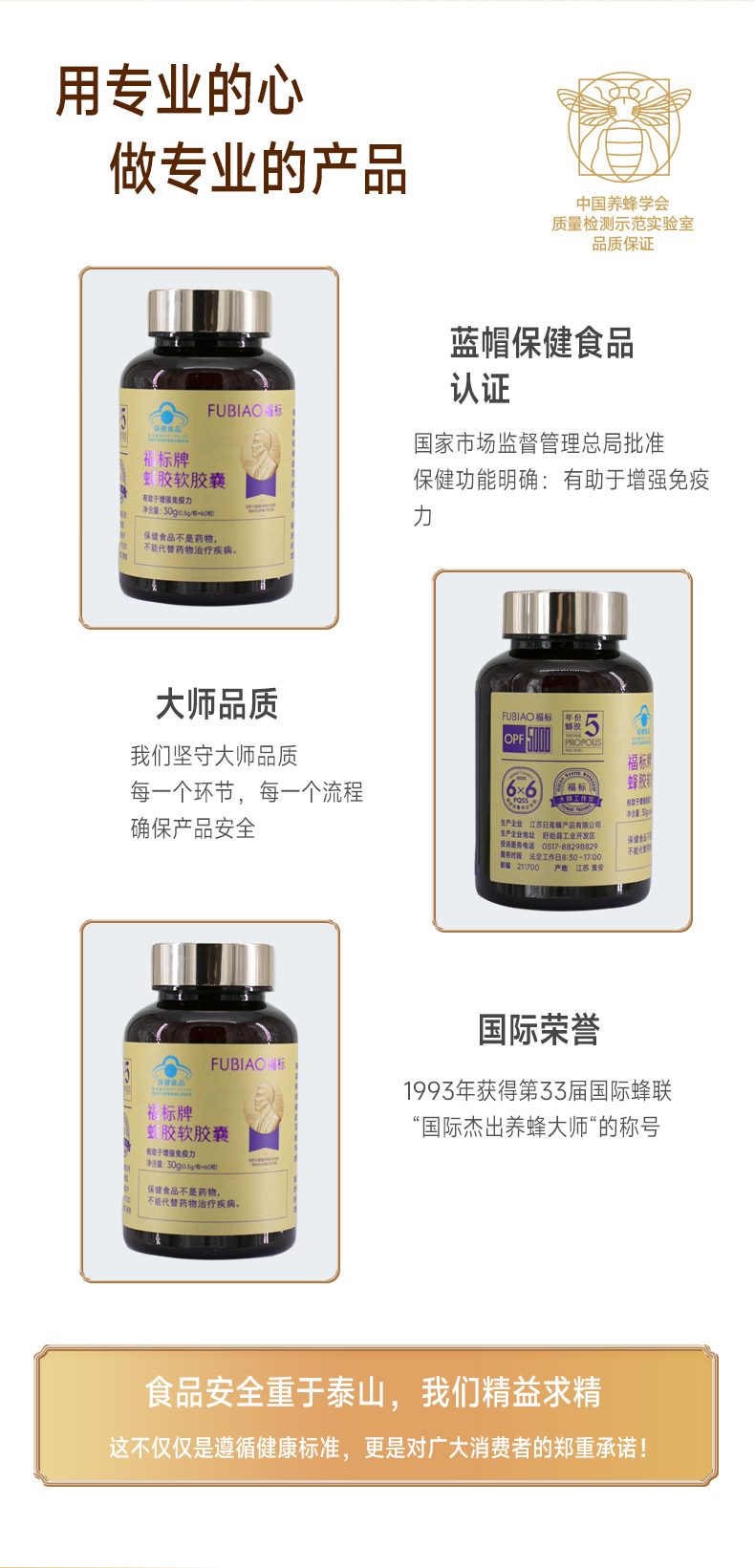 福标牌蜂胶软胶囊 有助于增强免疫力 成人中老年人保健品0.5g/粒*60粒*4瓶
