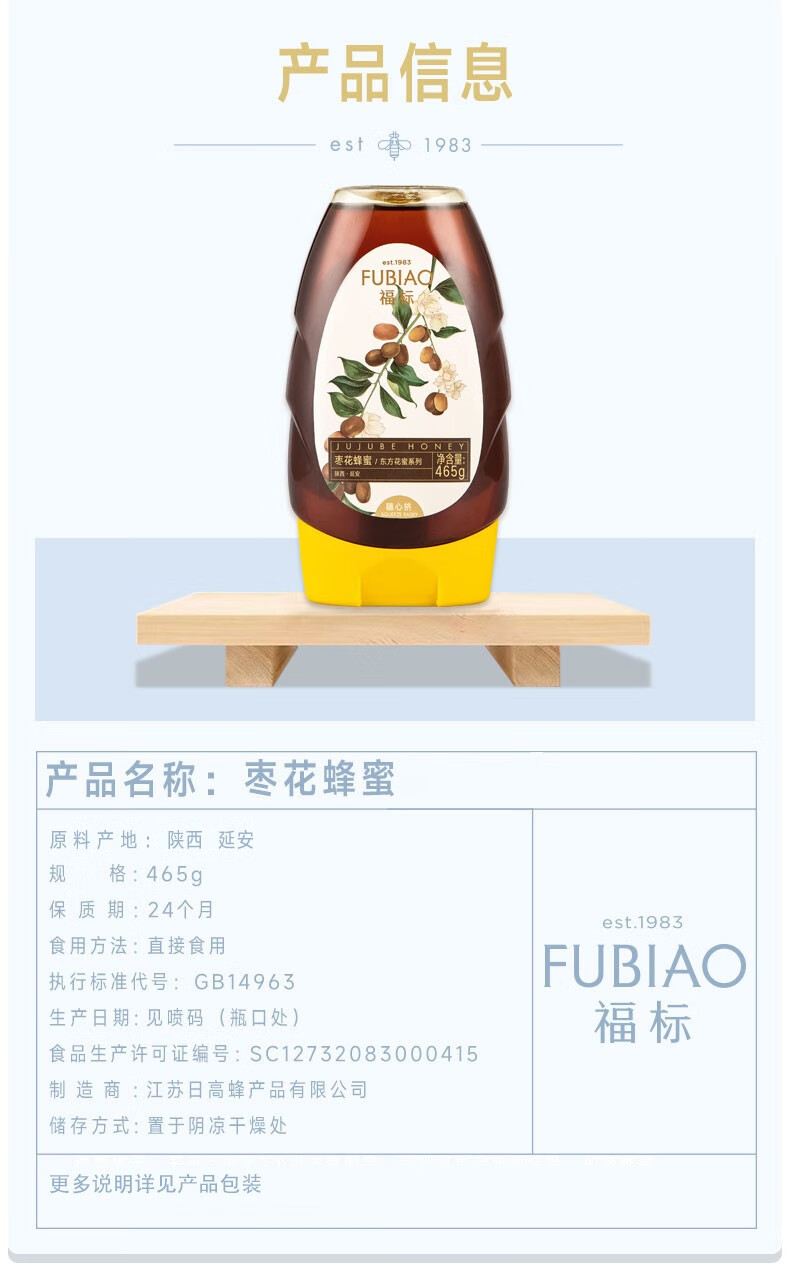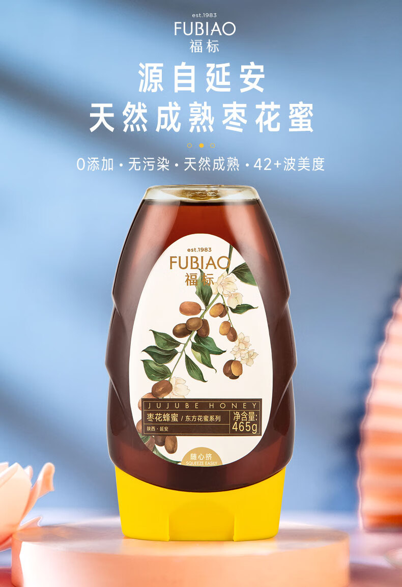 福标 延安黄土高坡枣花蜂蜜 465g/瓶装
